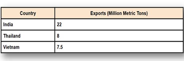 Ans. India is the largest rice exporter, shipping around 22 million metric tons annually.
