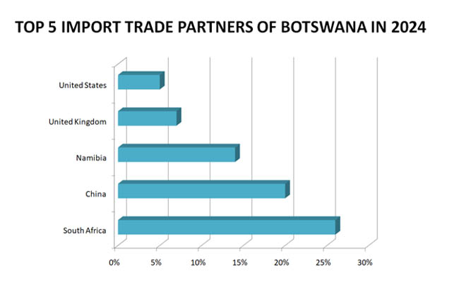 Ans. The US is the top export trade partner of Botswana for diamonds in 2024.