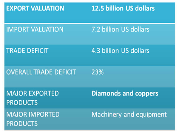 Ans. The export trade value of diamonds from Botswana in 2024 is 4 billion US dollars.