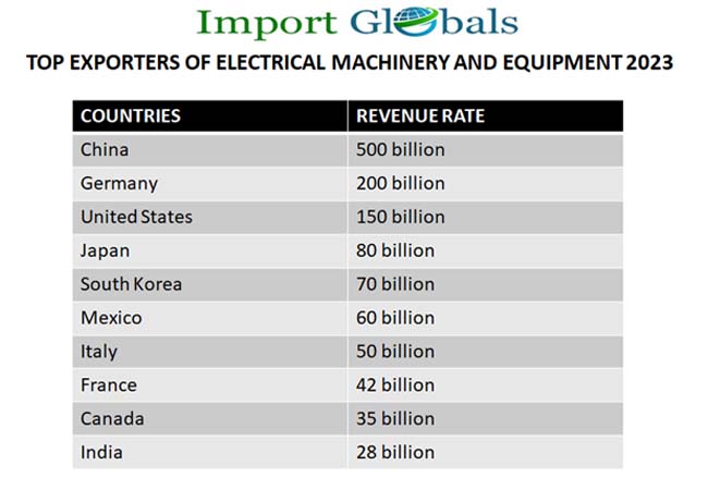 • United States – As per the USA Export Data, the overall export revenue of electrical equipment in 2023 is 150 billion US dollars.