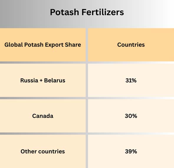 Based on Russia Import Export Trade Data by Import Globals, Potash fertilizers give plants potassium, which helps them stay healthy and use water better. Potash is most often shipped out of Russia and Belarus.