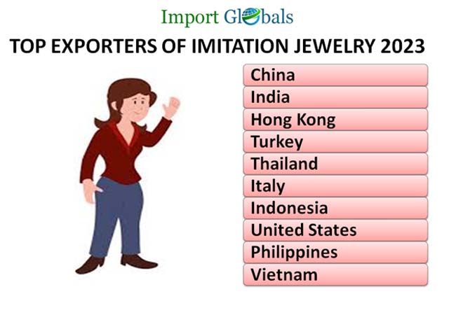 • India – As per the India Export Data, the export trade value of imitation jewelry in 2023 is 17 billion US dollars.
