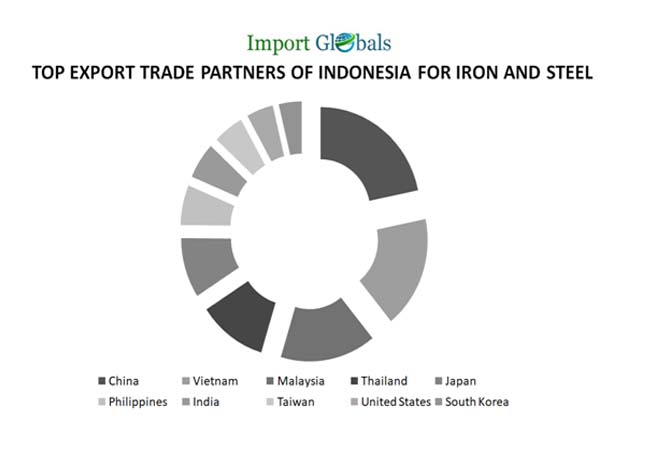 According to the Indonesia Trade Data, the export trade partners of Indonesia with which the country exports most of its iron and steel goods are discussed below,