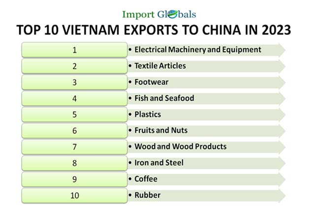 • Textile Articles – Value of Textile Articles exports from Vietnam to China in 2023 – 13 billion US dollars.