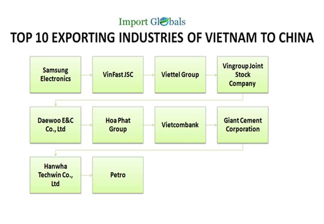 According to the Vietnam Trade Data, the top 10 exporting industries of Vietnam responsible for the majority of its export to China in 2023 are,