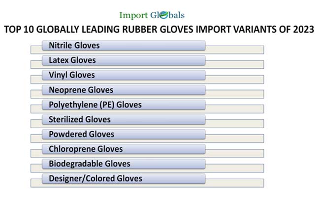 As per the Global Rubber Gloves Customs Data, the top 10 globally leading rubber gloves import variants of 2023 are,