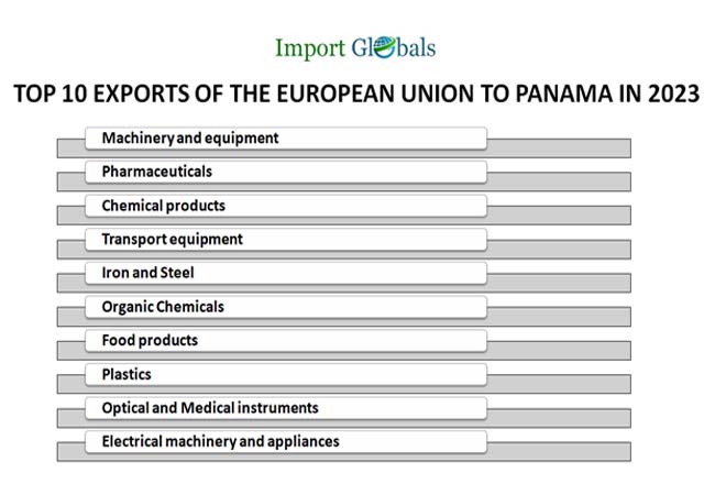 • Machinery and equipment – Valuation of Machinery and equipment exports from the European Union to Panama in 2023 – 2.5 billion US dollars.