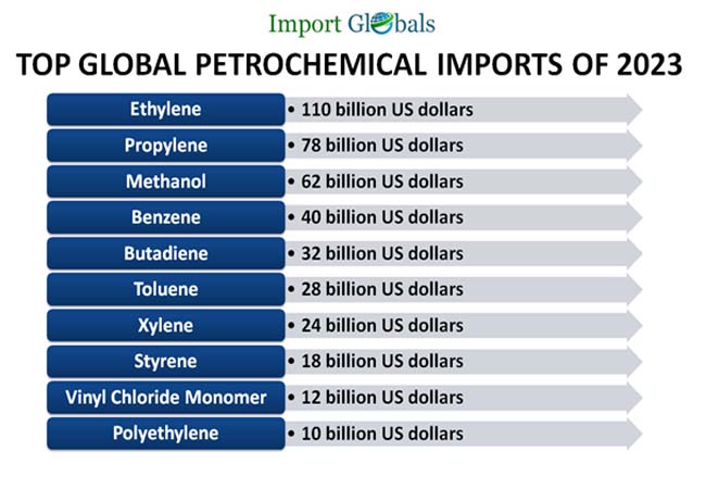 3. India - According to the India Import Data, valuation of petrochemical import in 2023 - 60 billion US dollars.
