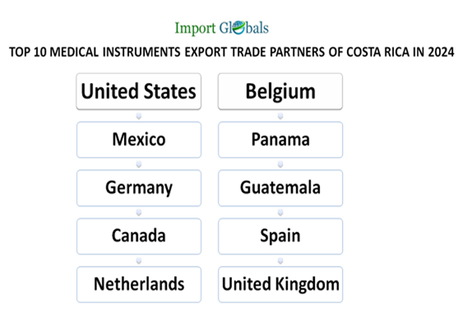 Ans. The United States is the top medical instruments export trade partner of Costa Rica in 2024.