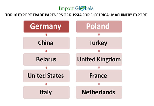 • Poland – According to the Poland Import Data, valuation of the electrical machinery export from Russia in 2023 – 7 billion US dollars.