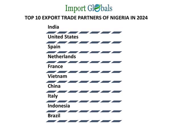 Ans. India dominates the top export trade partner of Nigeria in 2024.