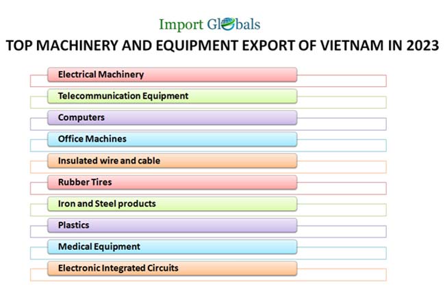 • Cambodia – As per the Cambodia Import Data, the valuation of machinery and equipment export from Vietnam in 2023 – 12 billion US dollars.