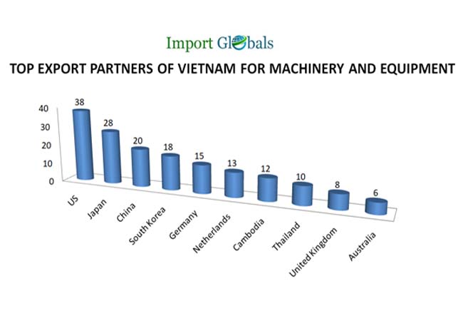 • United States – As per the USA Import Data, the valuation of machinery and equipment exported from Vietnam in 2023 – 38 billion US dollars.
