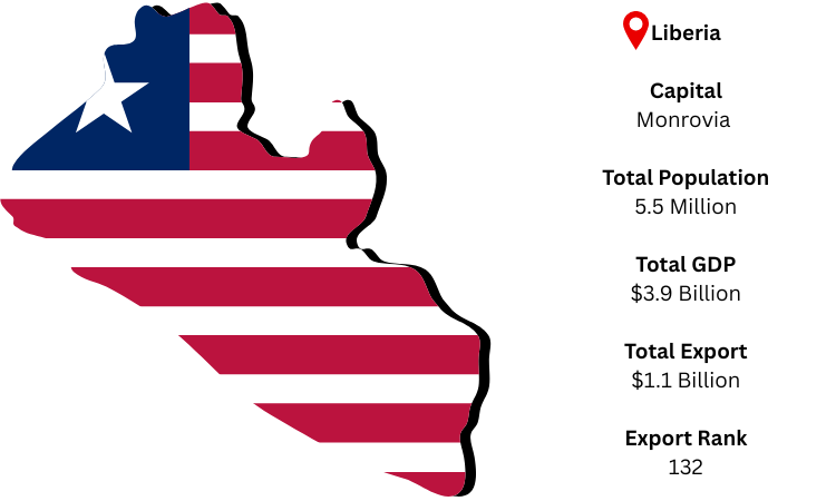 Monrovia is the capital of Liberia, a West African coastal nation. According to Liberia export data, the country's GDP was around USD 3.9 billion. Its population is around 5.5 million people. Liberia ranked about 132nd in the world with an aggregate export value of about USD 1.1 billion. Its primary export partner was Switzerland, and its top export product was gold as per Liberia Export Data.