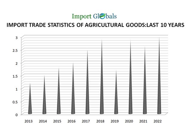 Ans. At Import Globals, you can get a detailed trade analysis of agricultural goods imported in 2023 with values.
