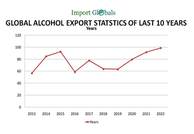 • China – As per China Export Data, valuation of alcohol from China in 2023 – 40 billion US dollars.