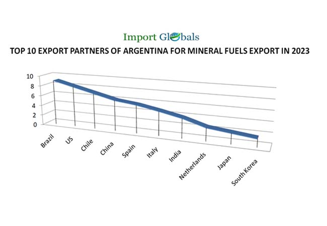The leading nations listed by Argentina Customs Data for export of mineral fuels in 2023 are discussed below,
