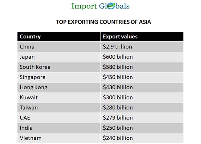 The Asia Export Data lists the below-mentioned as the top export destinations, accounting for the majority of the share in the economic growth.
