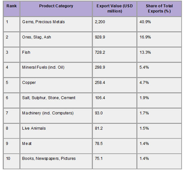 Ans. Namibia's top export products include diamonds, uranium, copper, fish (especially hake and horse mackerel), and other minerals like zinc and lead. These resources form the backbone of the country’s export economy.