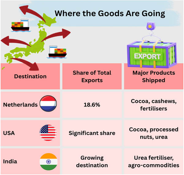 Ans. As per Nigeria Import Shipment Data, primarily cocoa, urea fertiliser, and cashew nuts, all benefiting from strong global demand and improved processing capacity.