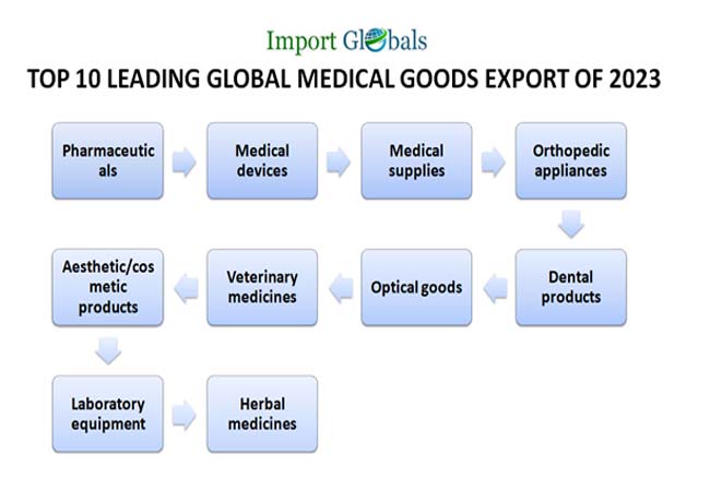 Ans. Pharmaceuticals are the top global medical goods export of 2023.