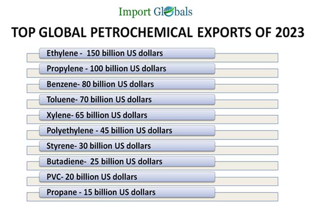 3. India - According to the India Import Data, valuation of petrochemical import in 2023 - 60 billion US dollars.