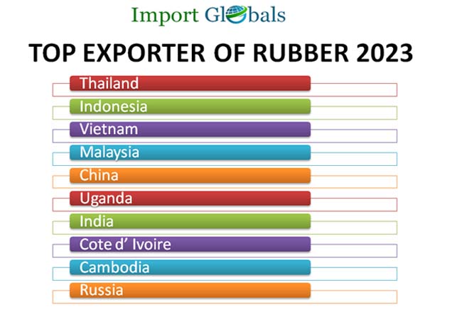 1. Thailand – As per the Thailand Export Data, the total export trade value of rubber in Thailand 2023 – 7 billion US dollars.