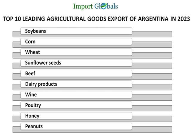 • Brazil – According to the Brazil Import Data, the valuation of the agricultural goods exported from Argentina in 2023 – 14 billion US dollars.