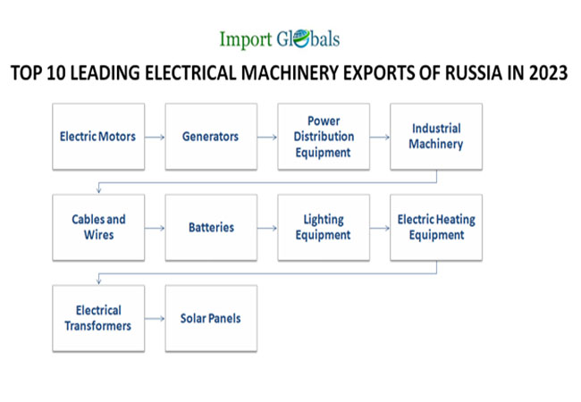 Ans. Electrical motors dominate the top electrical machinery export of Russia in 2023.