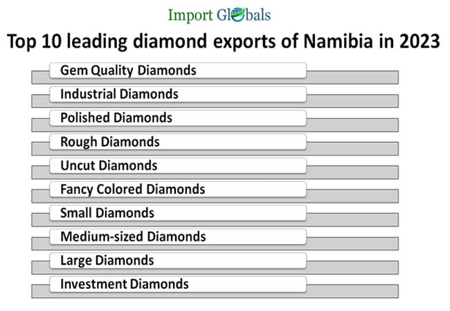 According to the Namibia Export Data, the top 10 leading diamond exports of Namibia in 2023 are,